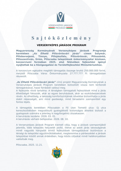 Kedvezményezett: Piliscsaba Város Önkormányzata
